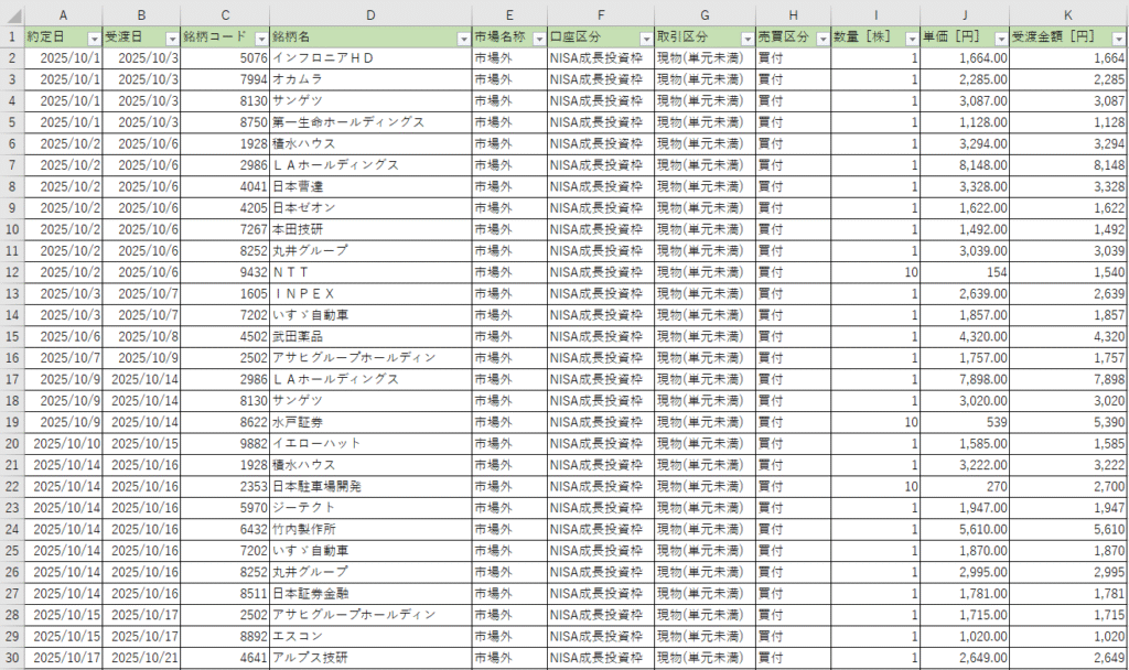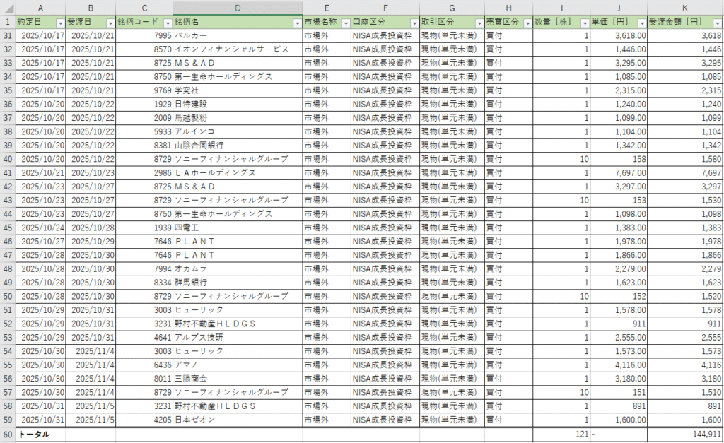 今年は夏枯れ相場も来なくて「秋枯れ相場が来るぞ!」なんてX(旧Twitter)でも話題になっていましたが、米国相場は10/10に結構下がったタイミングがありましたけど相変わらずのTACOトレードですぐさま回復、今月もS&P500指数は絶好調の右肩上がり。